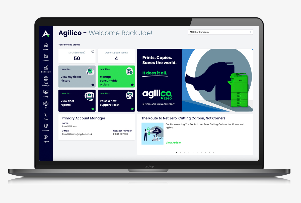 Last year we moved to our new, more sustainable home at City South Business Park in Aberdeen. The workshop here is now at the forefront of our Agilico Zero programme, directly supporting the Circular Economy across the North East of Scotland and helping local businesses reduce their environmental impact with greener managed print services.