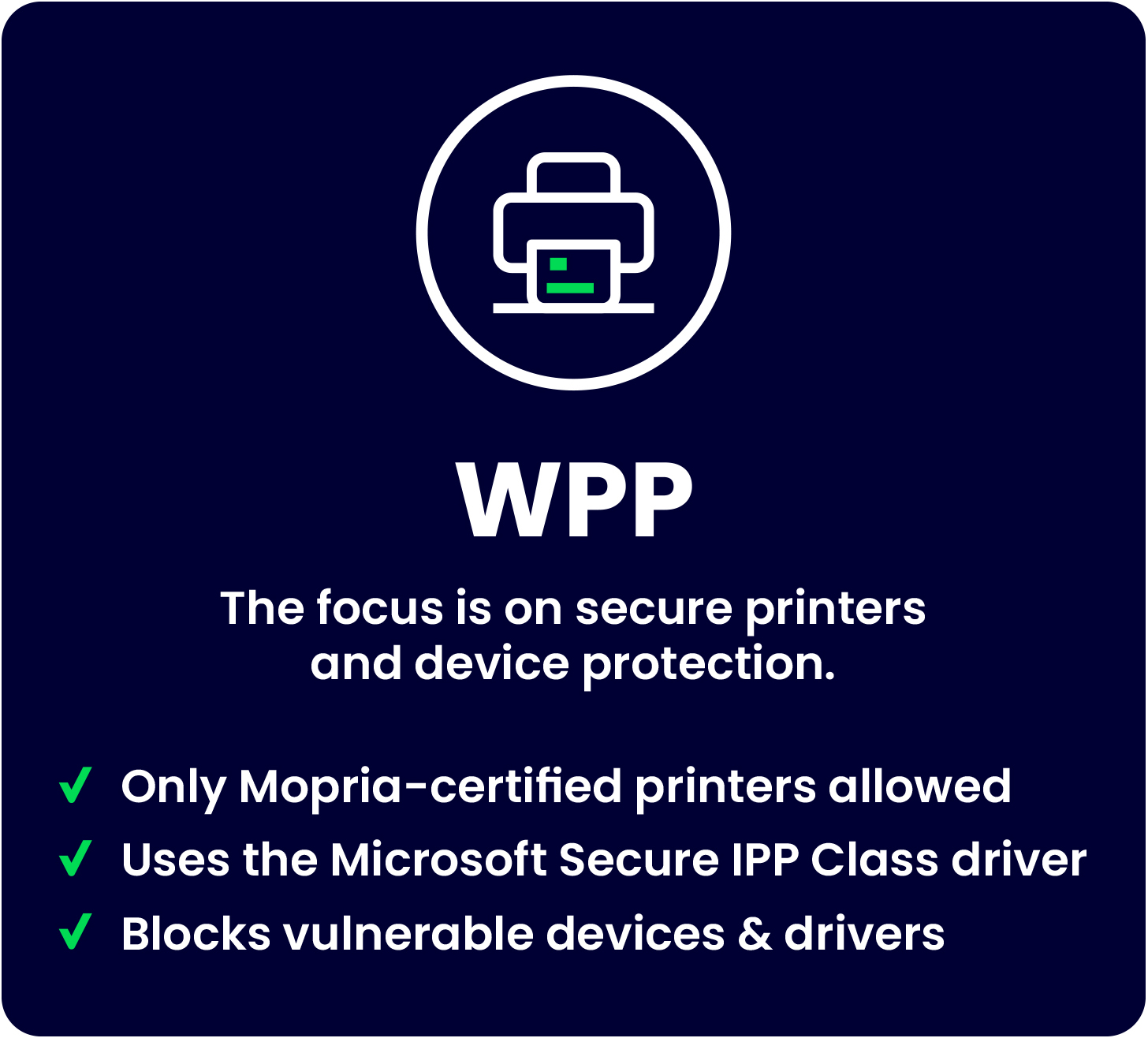 To address these risks, Microsoft has introduced several improvements, including the Modern Print platform and Windows Protected Print (WPP).